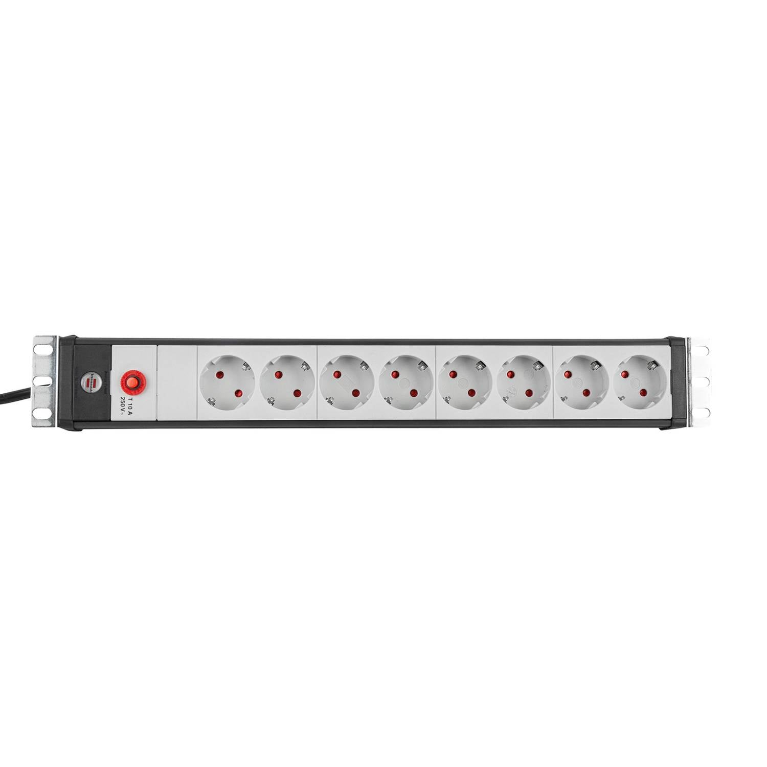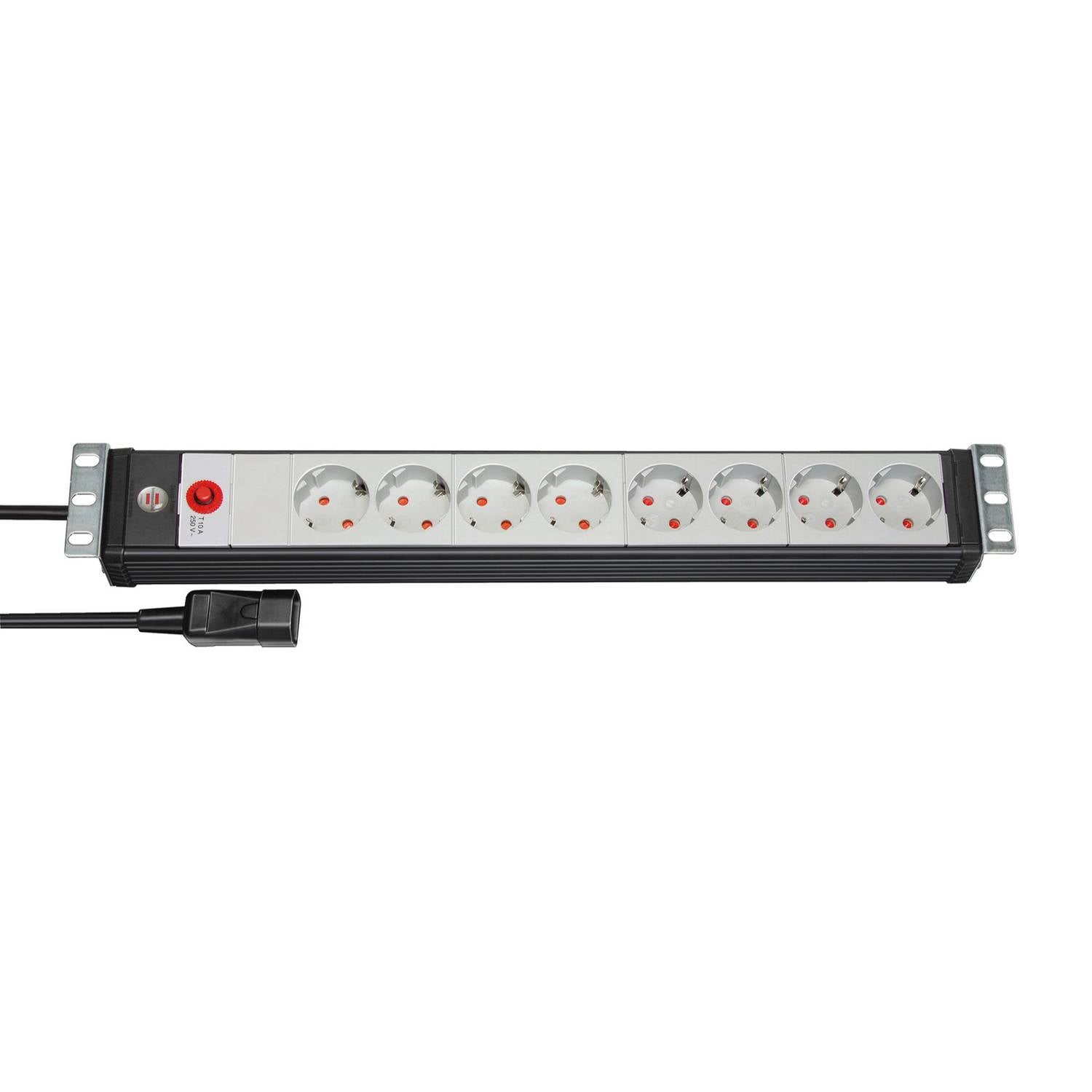 Barrette de prises 19" Premium-Line pour armoires de commande 8 contacts noir/gris clair 3 mH05VV-F 3G1.0 format 19" avec connecteur IEC- Idéal pour une installation dans des armoires réseau ou serveur 19" : largeur 19" et hauteur 1,5 U