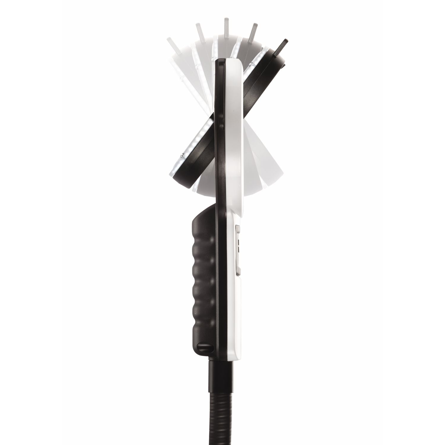 La tête de loupe a une plage de pivotement optimale grâce au support col de cygne en combinaison avec une monture d'objectif à deux axes. La lampe loupe est facilement alignée à l'aide de la poignée de loupe ergonomique.Grâce à son faible poids, ses dimensions compactes et la grande flexibilité de son pied, le varioLEDflex peut être utilisé presque partout.