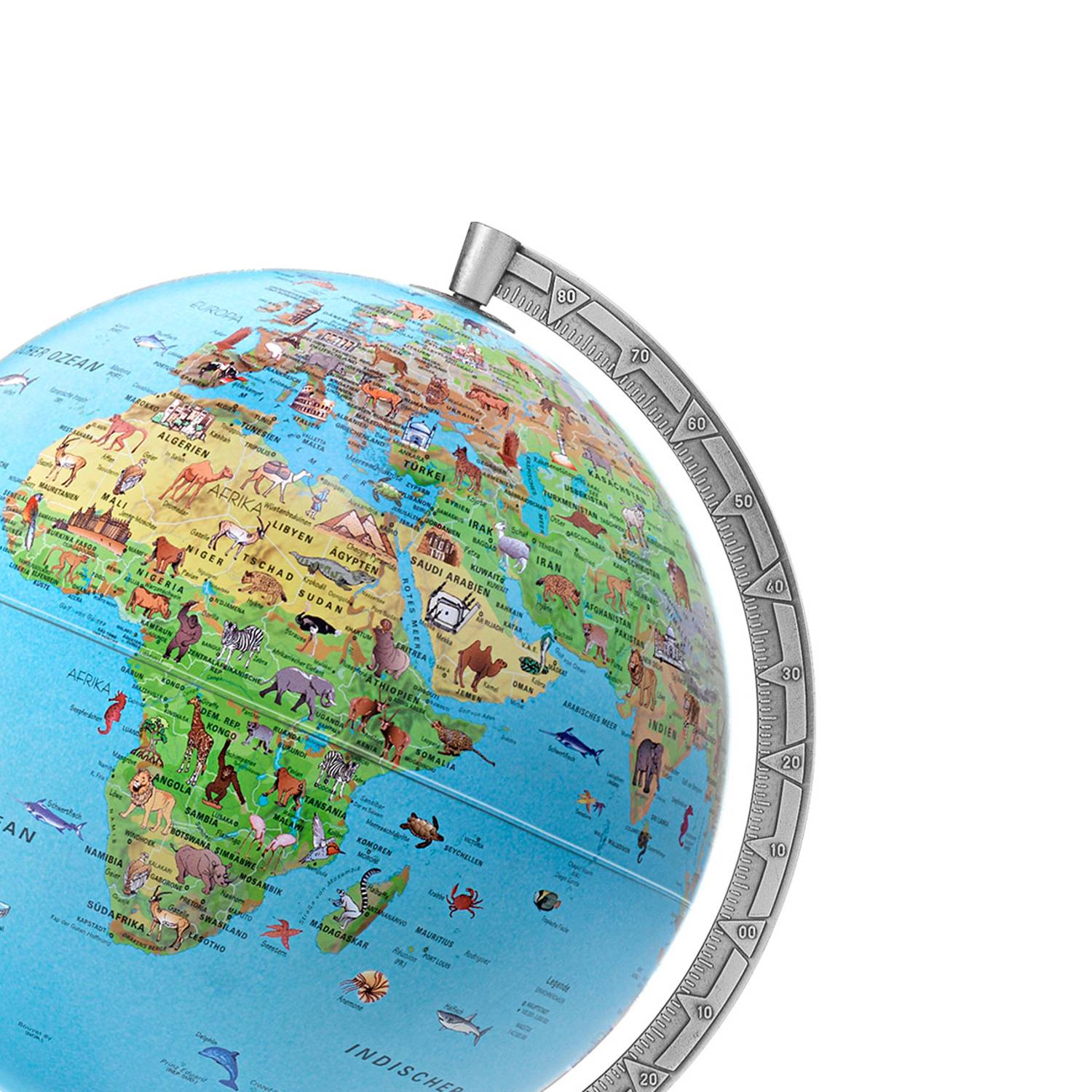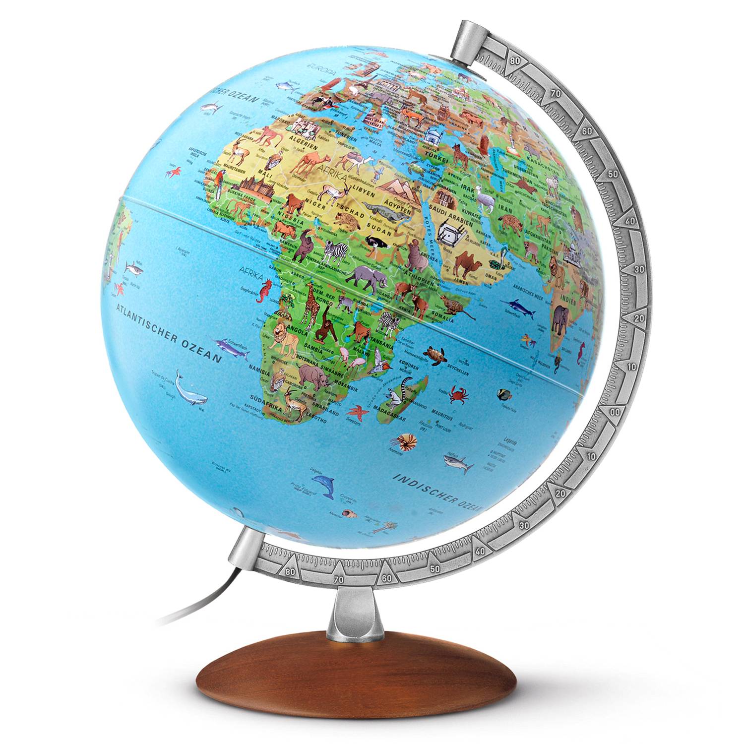 Globe lumineux pour enfants Räthgloben, double image, 30 cm de diamètre, 39 cm de hauteur, avec livret d'accompagnementCe globe lumineux a été spécialement conçu pour les enfants. L'image de la carte montre, dessinée avec amour, la flore et la faune spécifiques à la région. Avec une hauteur adaptée aux enfants de 39 cm et un diamètre de 30 cm, ce globe s'intègre dans la chambre de chaque enfant pour rapprocher notre planète bleue de votre progéniture. L'inscription est écrite en allemand facilement lisible. Ce globe lumineux est également idéal comme lampe de chevet ou veilleuse. La livraison comprend un livret informatif avec des explications sur les différentes illustrations.